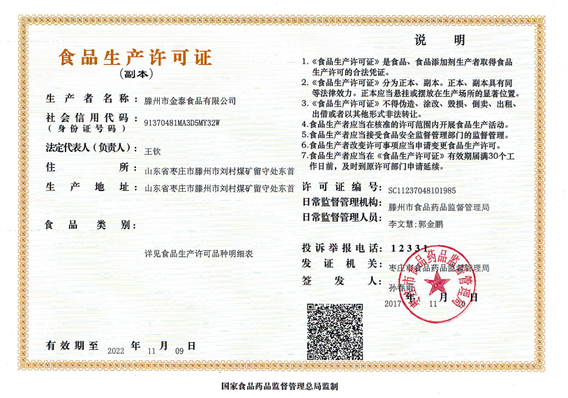滕州市金泰食品股份有限公司是滕州一家大型民營企業(yè),成立于2017年1月,法人石圣,企業(yè)坐落于山東省滕州市劉村煤礦院內(nèi),占地30畝,個(gè)人獨(dú)資企業(yè),現(xiàn)有員工50人,注冊資金800萬元。年生產(chǎn)能力10萬噸,產(chǎn)值2.4億元。